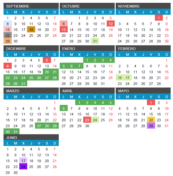 HORARIO Y ENTRADAS » Calendario escolar 2025/26